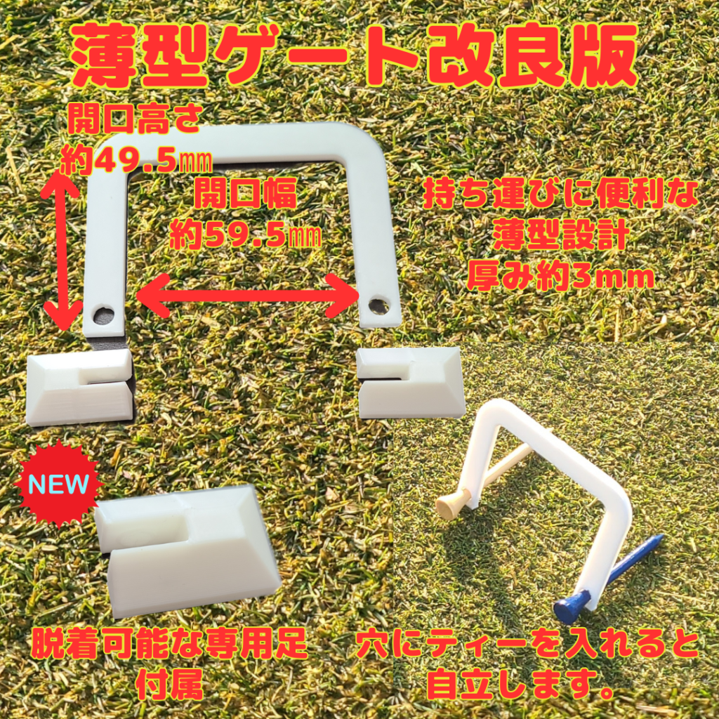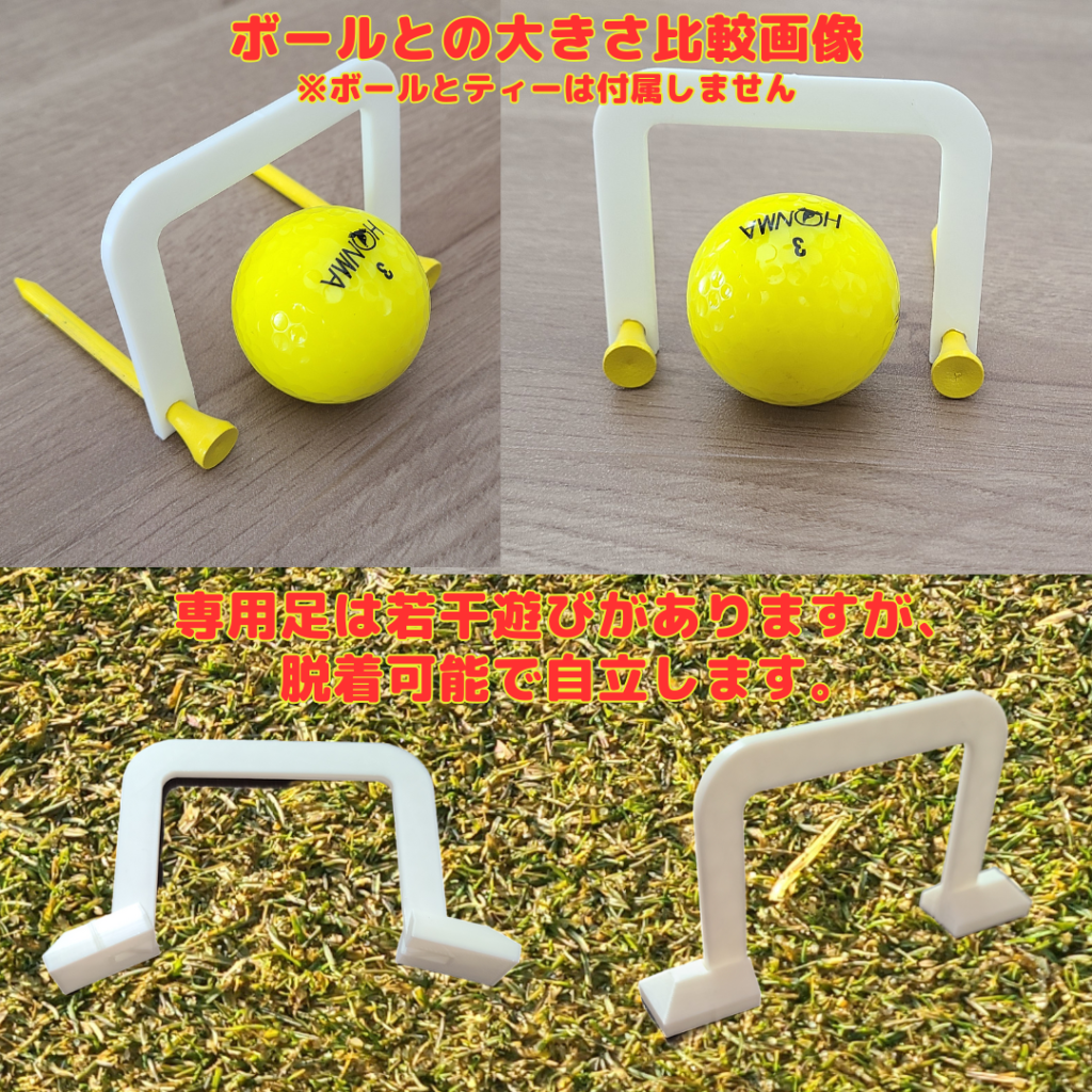 ※ティーで自立させた場合は、若干斜めになるので、開口高さが5mm程度低くなりますが、ボールは通過できます。